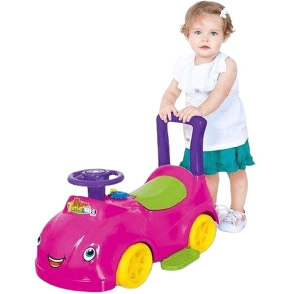 Play Time Andador e Carrinho de Atividades. Vem com porta treco, engrenagens que giram, dispositivo com som de motor e haste para empurrar. Produto 100% seguro para o seu bebê.