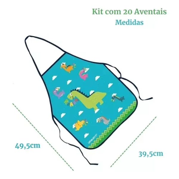 O avental escolar infantil Dino é perfeito para as crianças levarem para a escola e protegerem suas roupas durante as atividades artísticas e brincadeiras. Feito com material resistente e fácil de limpar, possui um design di