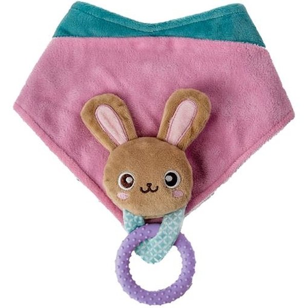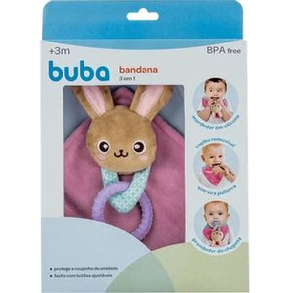 A bandana 3 em 1 da buba é superdivertida e versátil! Além de proteger a roupinha do bebe da umidade, um Coelho removível que pode ser usado como pulseira ou até mesmo como prendedor de chupeta, acompanha mordedor em silicone, ideal para aliviar o desconforto causado pelo nascimento dos primeiros dentinhos.
