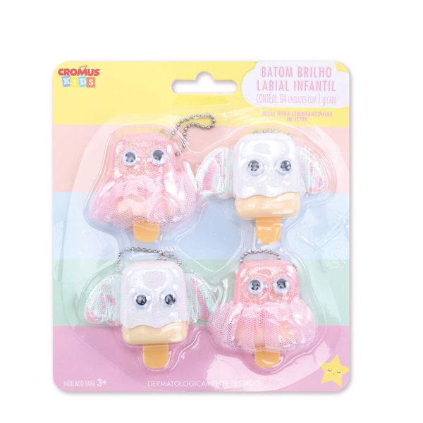 CONTEÚDO DA EMBALAGEM : 4 BRILHOS LABIAL INFANTIL