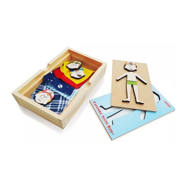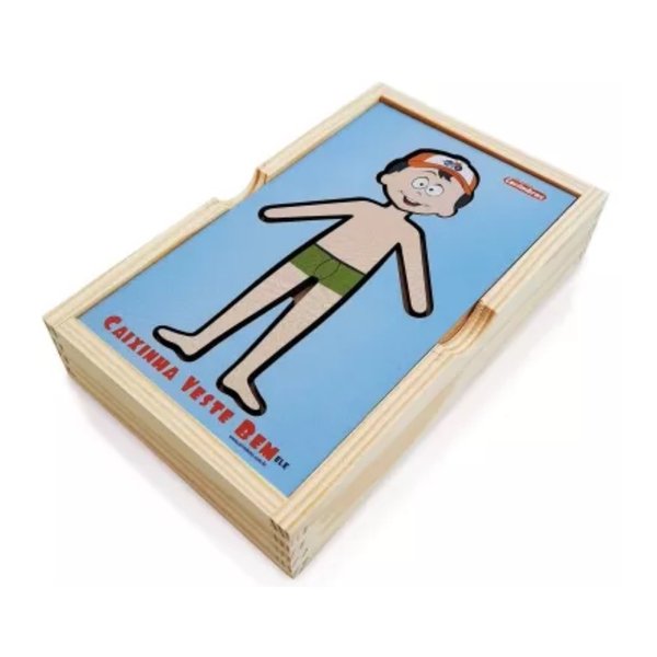01 caixa em madeira com ilustração de personagem masculino