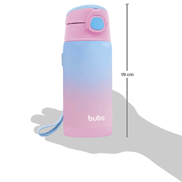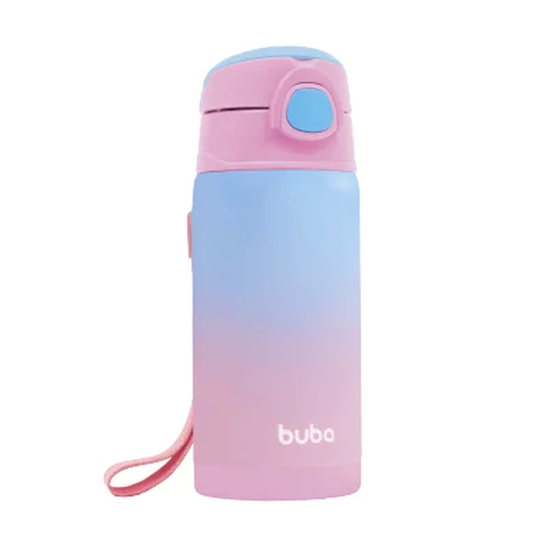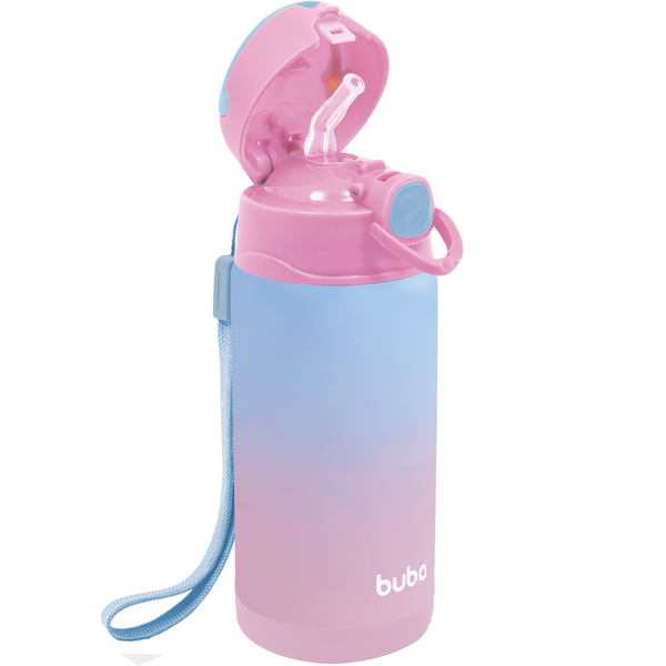 Copo Térmico Parede Dupla Com Canudo Rosa 400ml 15933 -Buba