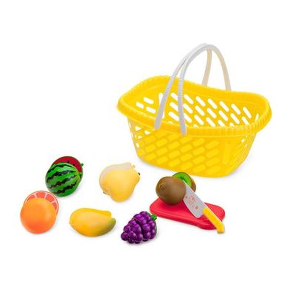 A cestinha Creative Fun vem com a feira completa, são 6 peças frutas para você brincar. Ainda vem com uma faquinha e uma tabua para você cortar os frutas no meio!