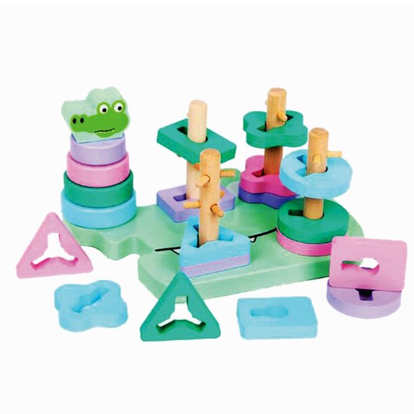 Possui formas com recortes diferentes que, para serem encaixadas, precisam ser rotacionadas, estimulando o desenvolvimento da coordenação motora fina.
