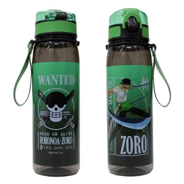 Super Garrafa de plástico do melhor espadachim do mundo Roronoa Zoro. Ideal para quem não quer esquecer de se hidratar, seja em casa, no quarto, escola, escritório ou durante as aventuras dos Piratas do Chapéu de Palha. Possui trava de segurança, sistema abre e fecha, para deixar o bico seguro e muito mais protegido e higiênico, ideal para levar a qualquer lugar sem a preocupação de contaminação. Excelente opção de presente criativo que irá agradar amigos e familiares que já amam o mangá e anime de One Piece.