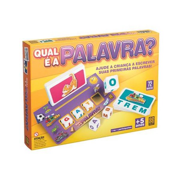 Existe algo melhor do que aprender enquanto se diverte? Qual é a Palavra? Propõe várias formas de brincar e se divertir, acompanhando o ritmo da criança e ensinando-a a dar os primeiros passos no aprendizado da língua portuguesa. O objetivo é procurar as letras nos dados e encaixá-los no suporte para formar a palavra desejada. A atividade mais simples propõe que a criança veja tanto a figura quanto a palavra para encaixar os dados. Para dificultar um pouco, depois de memorizar a palavra, a criança se baseia apenas na imagem. Por fim, é possível organizar jogos com mais de um jogador: vence a criança que formar mais palavras corretamente! Componentes: -6 dados plásticos -6 conjunto de adesivos -36 cartelas com palavras e ilustrações -1 base de cartão -1 manual de instruções Tempo estimado de jogo: 50 minutos Participantes: a partir de 1 jogador Indicado para maiores de 5 anos.