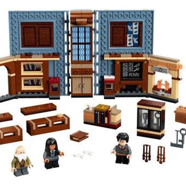 Inclui as minifiguras: Harry Potter, Cho Chang e Professor Flitwick, quadro-negro, estante, lareira, livro de feitiços e muitos acessórios autênticos