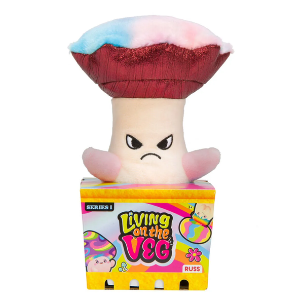 Conheça o mundo de Living on the Veg - a fazenda mais divertida de todas! Ela é o lar dos cogumelos, das espigas de milho e dos rabanetes mais legais que você irá conhecer! Cada colheita tem seu próprio grupo de personagens. Feitos com tecido fofo e super macio, colecione todos os 12 cogumelos de pelúcia da Série 1. Cada pelúcia tem em média 15cm de altura.