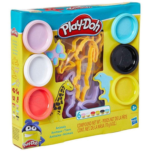 PLAY DOH ANIMAIS E8535 é um conjunto de modelagem de massinha de brinquedo para crianças. Ele vem com quatro potes de massa Play-Doh nas cores azul, branco, verde e rosa, além de uma variedade de ferramentas de modelagem e moldes de animais como elefante, leão, macaco e zebra. As crianças podem usar sua imaginação para criar seus próprios animais ou seguir os moldes para fazer figuras mais precisas. É uma maneira divertida e criativa para as crianças explorarem sua habilidade manual e criatividade.