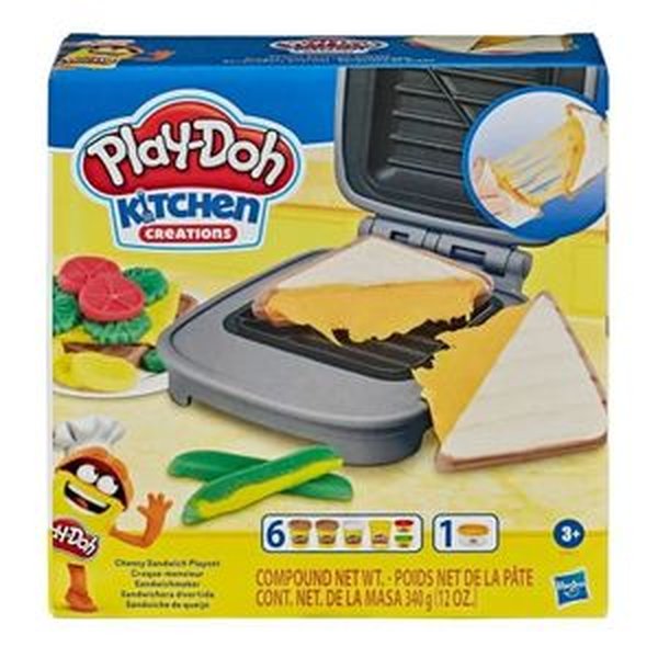 A Massinha Play-Doh Queijo Quente da Hasbro é um kit de brinquedo que permite às crianças criarem seus próprios lanches de queijo quente com massinha de modelar Play-Doh. O kit inclui formas de queijo, fatias de pão, molho de tomate, utensílios de cozinha e um extrusor de Play-Doh para criar deliciosos sanduíches de queijo quente. Além de estimular a criatividade das crianças, o kit também ajuda no desenvolvimento da coordenação motora fina e na imaginação. É um brinquedo divertido para crianças a partir de 3 anos de idade