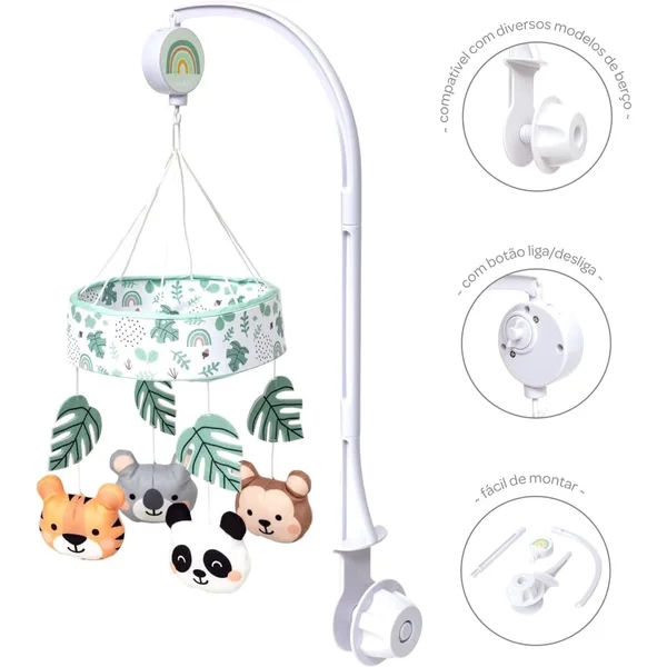 O Móbile Musical Giratório Selvinha Berço Carrinho Bebê Bubaé perfeito para entreter e acalmar o bebê com seus encantadores detalhes. Com um design giratório, este móbile apresenta personagens fofos que giram suavemente, proporcionando estímulos visuais enquanto a música suave toca, ajudando a relaxar o bebê. Ideal para ser colocado no berço ou carrinho, ele auxilia no desenvolvimento da coordenação motora e da percepção auditiva. Fácil de instalar e de usar, é uma ótima opção para criar um ambiente tranquilo e acolhedor para os pequenos.