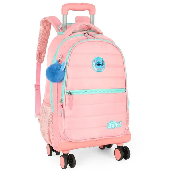 Ideal para crianças e adolescentes, a Mochila Carrinho Luxcel Stitch Salmão une conforto, praticidade e charme, sendo uma excelente opção para quem deseja um acessório funcional e cheio de personalidade.