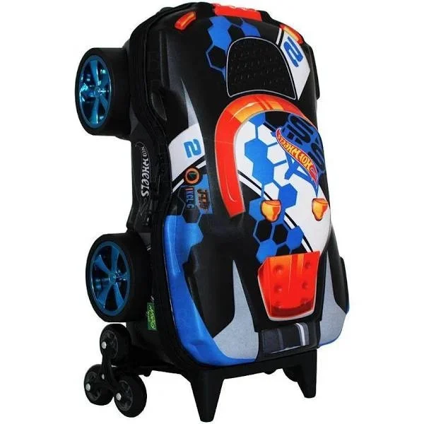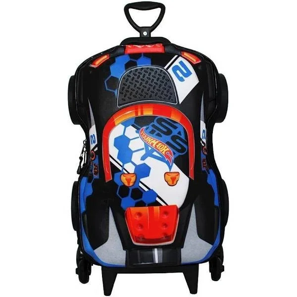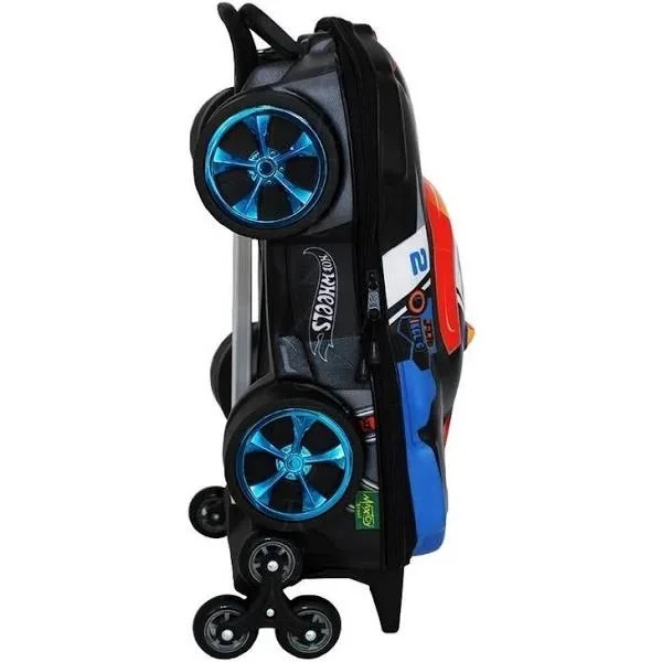 Mochila Rodinha 3d Escolar Infantil Menino Carro Maxtoy Hot Wheels Terrain Storn Preto
