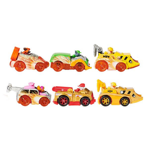 Estes brinquedos da Patrulha Canina estão prontos para correr para o resgate mais rápido do que nunca nesses veículos True Metal Este pacote de presente Spark vem com seis veículos de metal escala 1:55, incluindo versões exclusivas dos veículos dourados Marshall e Rubble Com detalhes e gráficos autênticos de faíscas, rodas de trabalho reais e material fundido de metal, os veículos True Metal Spark parecem com os carros de patrulha caninca do show de sucesso.