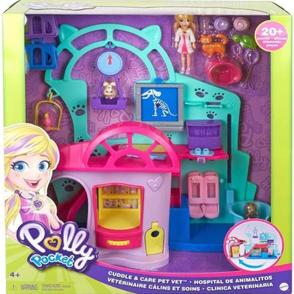 Explore o mundo divertido de Polly com a Polly Pocket Clínica Veterinária da Polly da Mattel Leve seu cachorrinho para uma divertida consulta veterinária na pequena cidade de Pollyville.Este conjunto de luxo inclui atividades veterinárias e acessórios para um faz de conta super real As crianças poderão criar suas próprias histórias ao colocar os pets na balança ou ao fazer o raio-x.Depois elas poderão fazer a Polly descer pelo escorregador para pegar alguns medicamentos e utensílios que farão super bem para saúde dos animaizinhos.Quando tudo estiver certo, é só colocar os pets para dormir em suas caminhas. São mais de 20 acessórios que farão dessa experiência veterinária única.