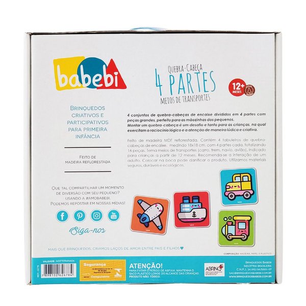 Quebra Cabeças 4 Partes Meios De Transportes 6078 - Babebi