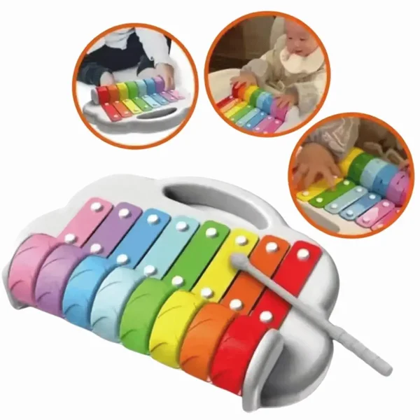 O Xilofone 2 em 1 Infantil com 8 Notas Musicais Arco-írisé um brinquedo educativo e divertido, perfeito para estimular o desenvolvimento musical e sensorial das crianças. Com 8 notas musicais, o xilofone possui barras coloridas em tons vibrantes que formam um arco-íris, tornando a experiência ainda mais atraente.